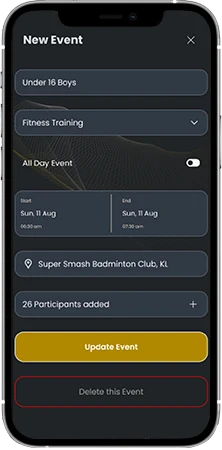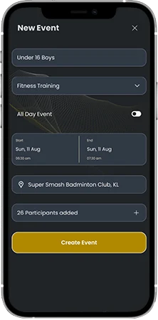 - As a head coach of the academy, you can create all the events in your academy.